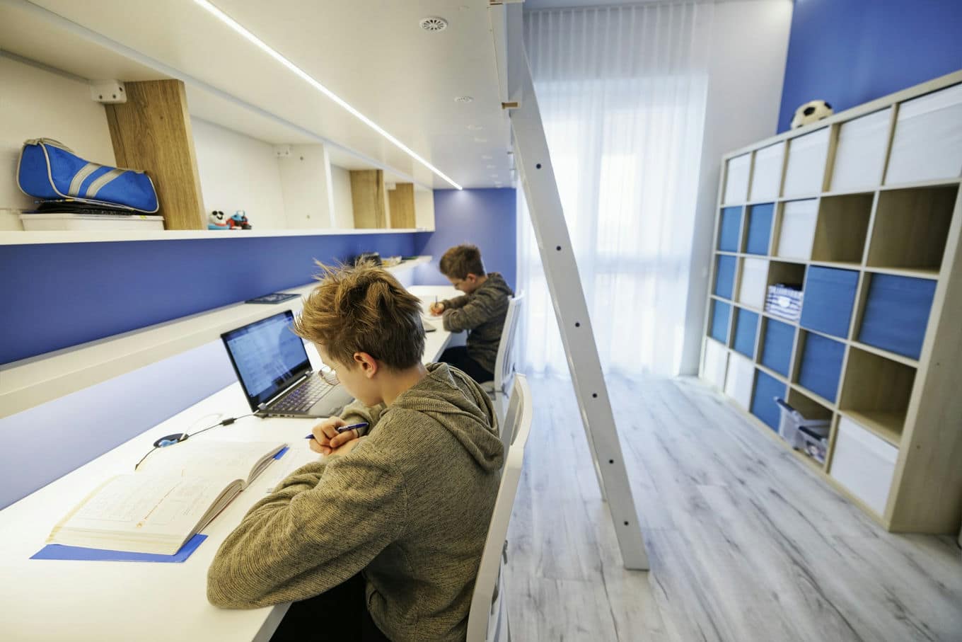 - Dzięki nowoczesnym rozwiązaniom, takim jak schowki, półki i oświetlenie LED, pokój staje się funkcjonalny i przyjazny na wiele lat.